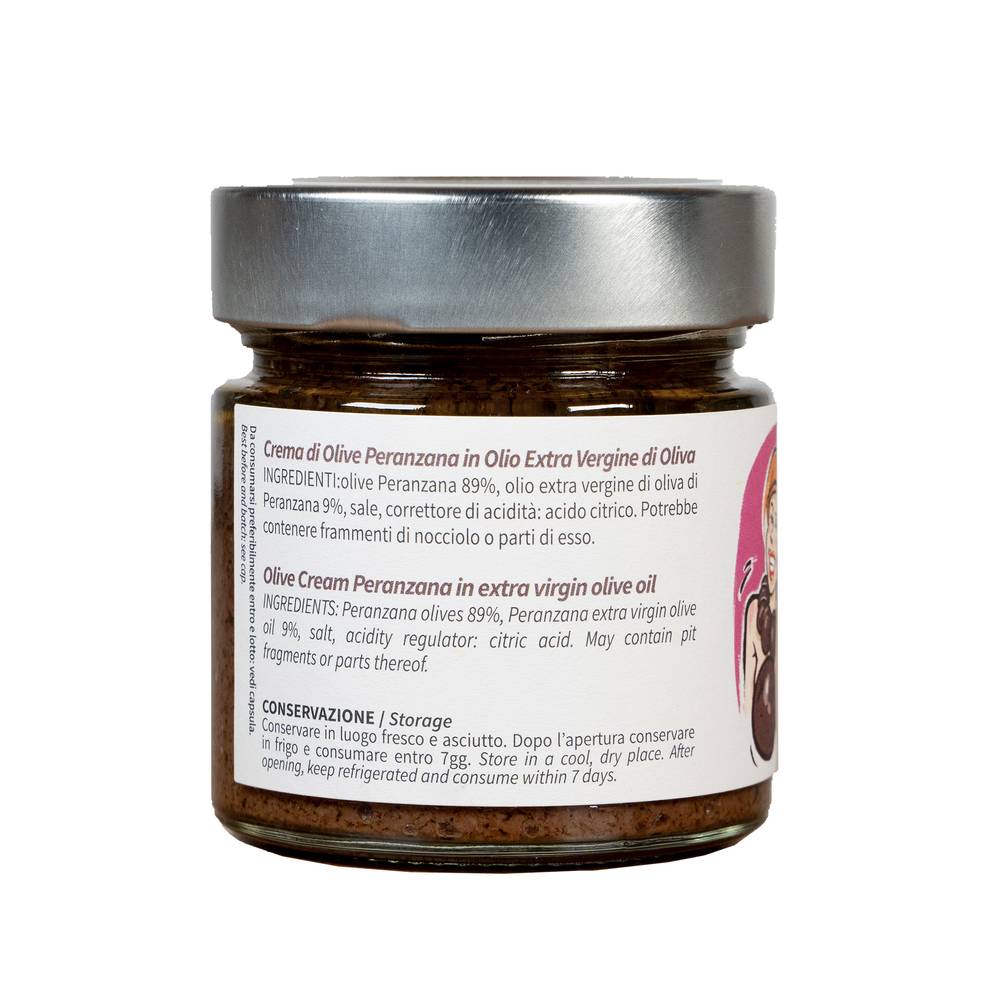 Our Peranzana olive paté in extra virgin olive oil is a culinary delight that captures the authentic flavor of the Mediterranean. Carefully and passionately made, it consists of high-quality Peranzana olives (89%) and Peranzana extra virgin olive oil (9%), together with a delicate combination of salt and citric acid as an acidity regulator.